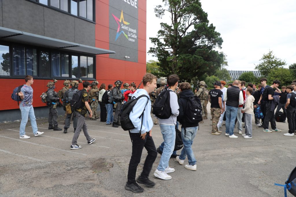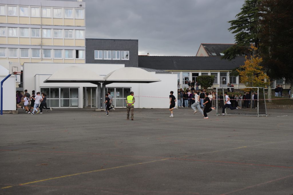 Dans le cadre du partenariat avec la Marine Nationale et le lycée Saint Joseph-La Salle de Lorient, les élèves du secteur des Métiers De la sécurité, composés des classes de Seconde, 1ère et de Terminale MDS, de 1ère et de Terminale CAP Agent de Sécurité, ont participé à un exercice grandeur nature sur l’ensemble des structures du collège et du bâtiment « France ».