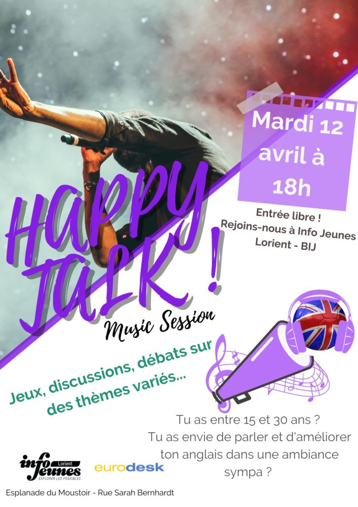 Le prochain Happy Talk (café linguistique en anglais destiné aux jeunes entre 15 et 30 ans) se déroulera mardi 12 avril à 18h à Info Jeunes Lorient (BIJ).